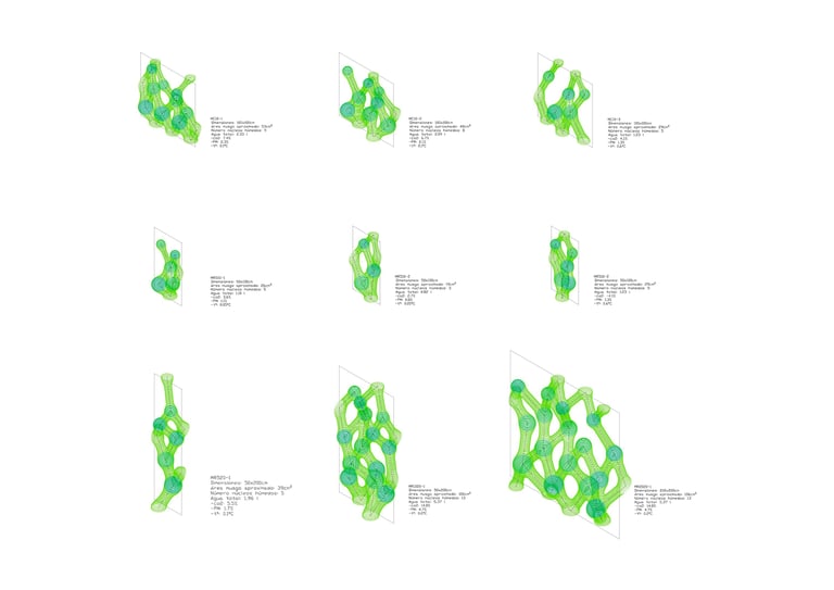 3D-printed ceramic structures inspired by the traditional Botijo cooling system, designed to host and sustain moss growth for natural air purification. The geometry is parametrically generated and performance-optimized: by entering initial data such as location, environmental conditions, and material properties, the system automatically produces an optimized design that enhances evaporation, supports moss development, and improves indoor air quality. This fusion of vernacular wisdom, advanced fabrication, and nature-based strategies creates a responsive architectural component aimed at healthier living environments.